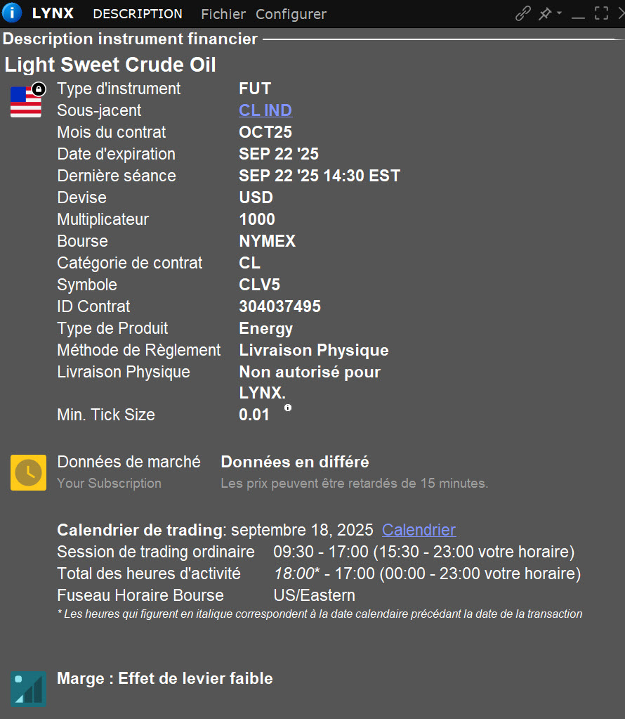 Attention : dans la plupart des cas, la livraison physique n’est pas autorisée via LYNX. Pour consulter les conditions de règlement des contrats à terme via LYNX, cliquez ici.