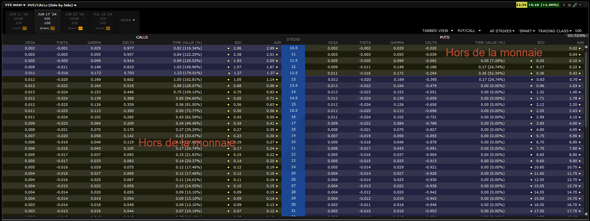 Les options hors de la monnaie sont donc celles qui sont le plus sensibles à une hausse ou une baisse de la volatilité, c’est pourquoi les traders qui veulent profiter d’un changement important de la volatilité se tournent souvent vers ce type d’options.